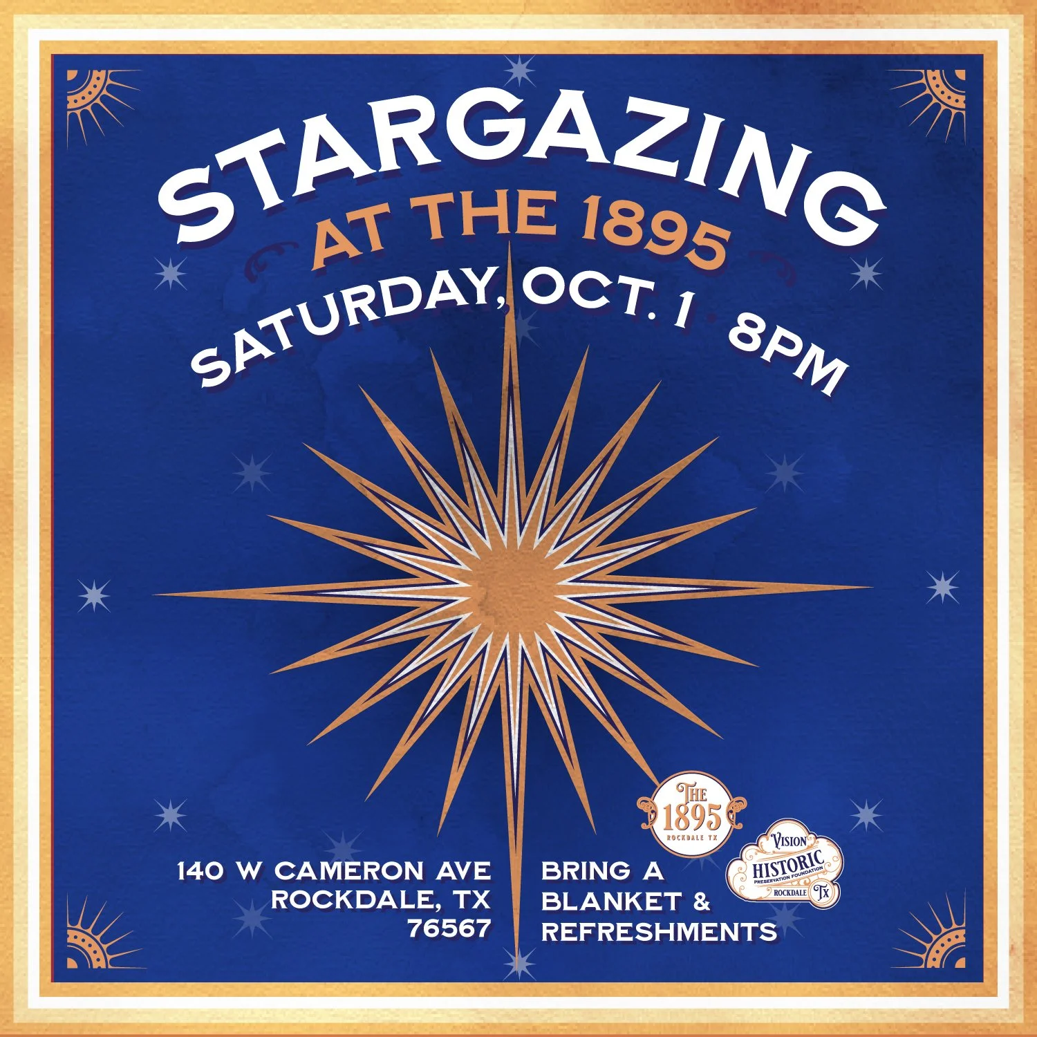 Bring your picnic blanket & refreshments and relax with friends on the lot behind The 1895 while Dr. Mark Bottorff of Southwestern University Astronomy guides attendees through a celestial tour of the night sky.