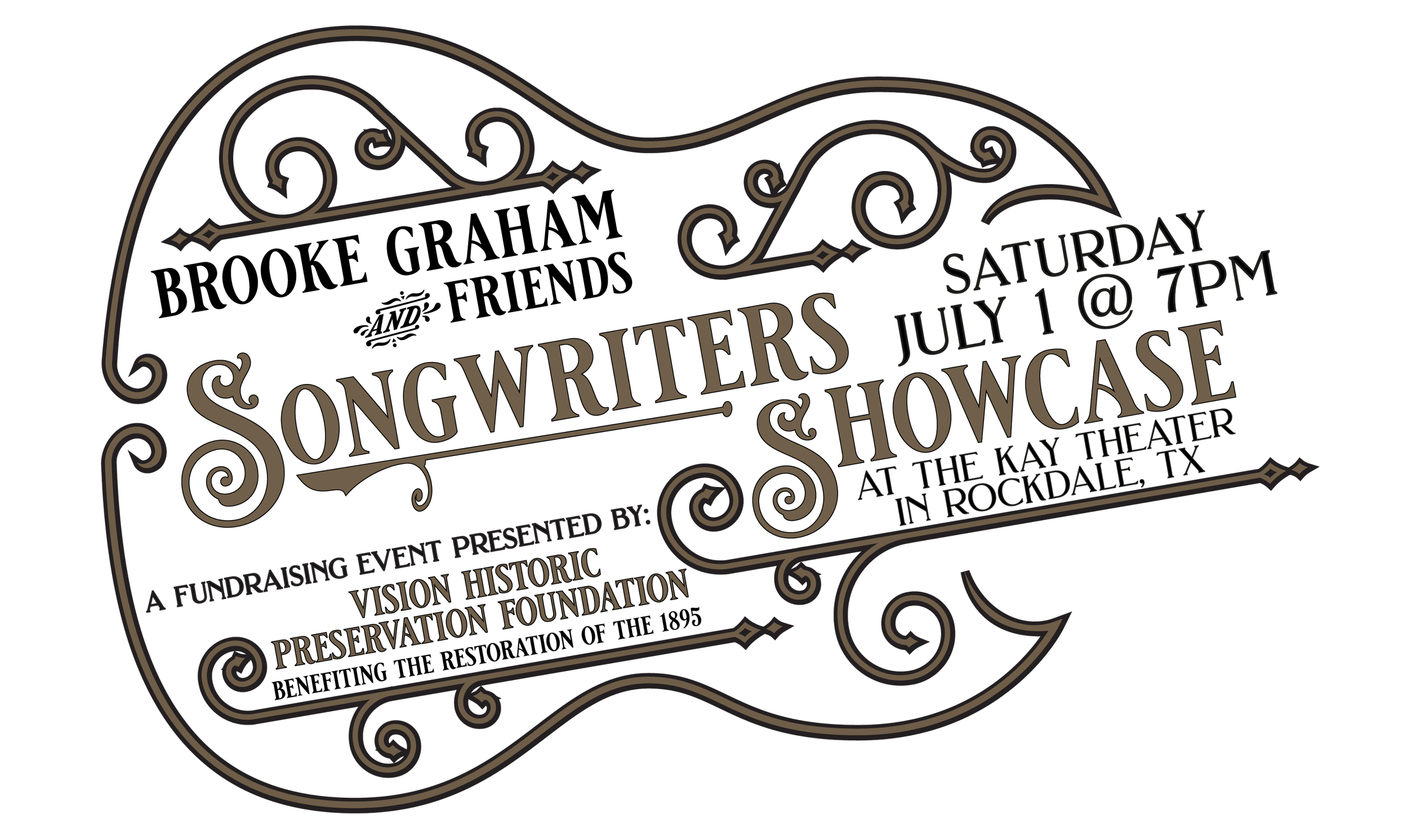 Enjoy an evening of musical talent as Vision Historic Preservation Foundation presents a Songwriters Showcase featuring Brooke Graham & Friends highlighting local talent and promoting the arts in Rockdale β all while raising funds for the restoration of The 1895!